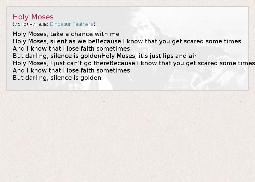 А как ты думаешь, о чем песня "Holy Moses" ?