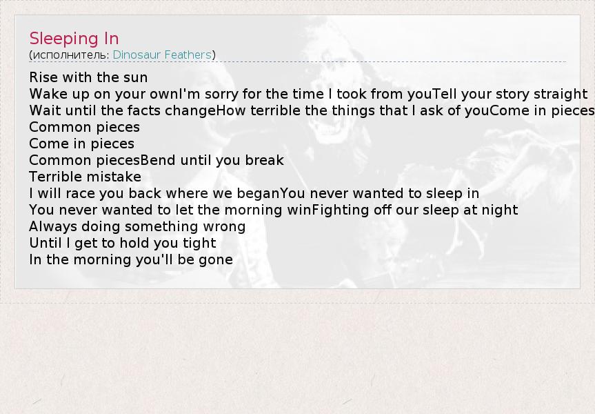 А как ты думаешь, о чем песня "Sleeping In" ?