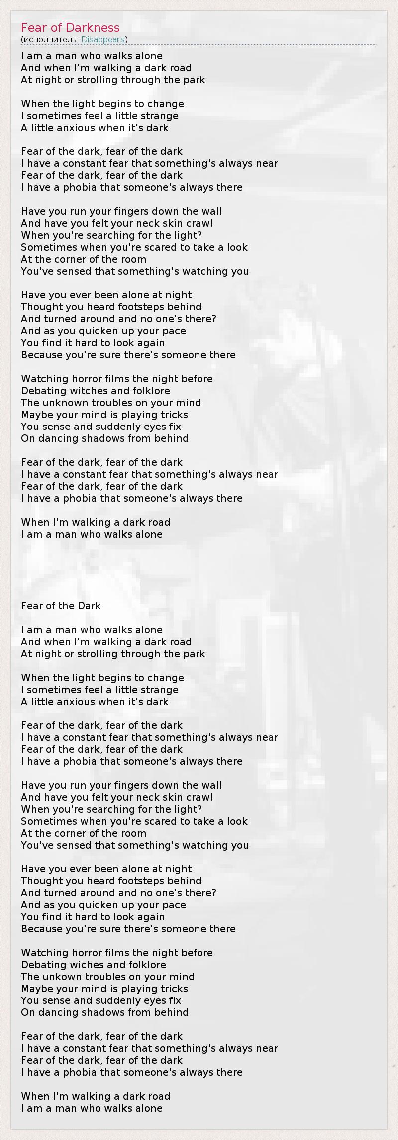 Страх темноты (перевод Александр Дементьев из Екатеринбурга)