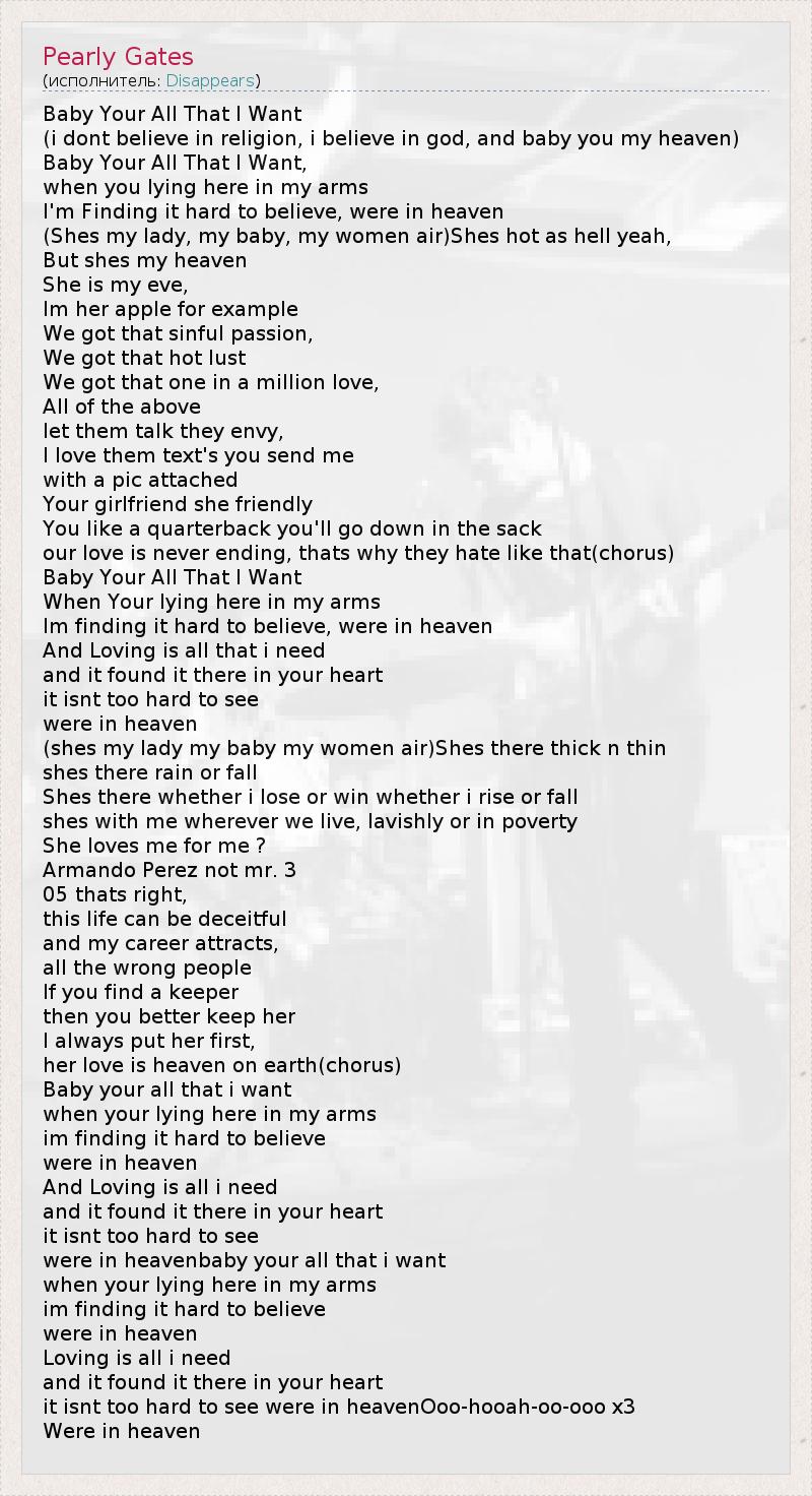 А как ты думаешь, о чем песня "Pearly Gates" ?
