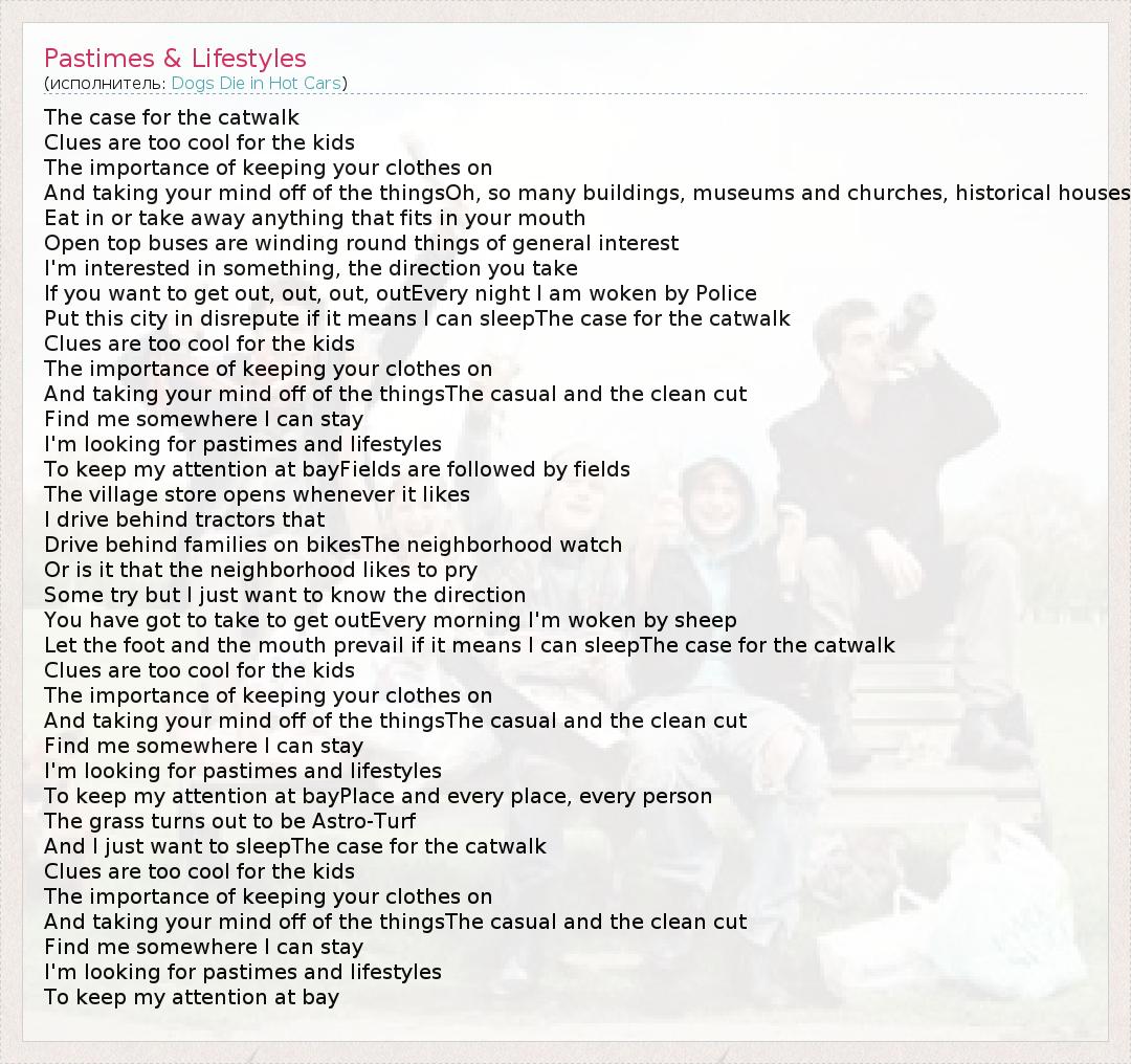 А как ты думаешь, о чем песня "Pastimes & Lifestyles" ?
