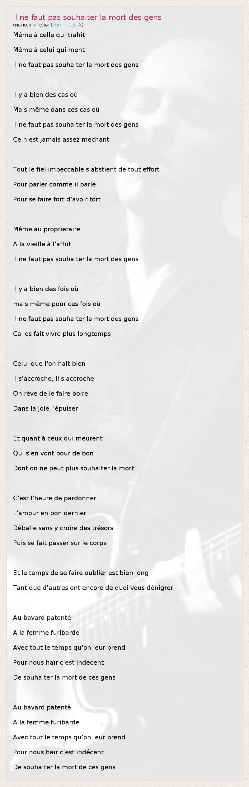 А как ты думаешь, о чем песня "Il ne faut pas souhaiter la mort des gens" ?