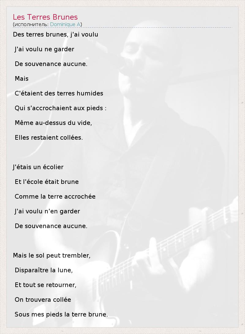 А как ты думаешь, о чем песня "Les Terres Brunes" ?