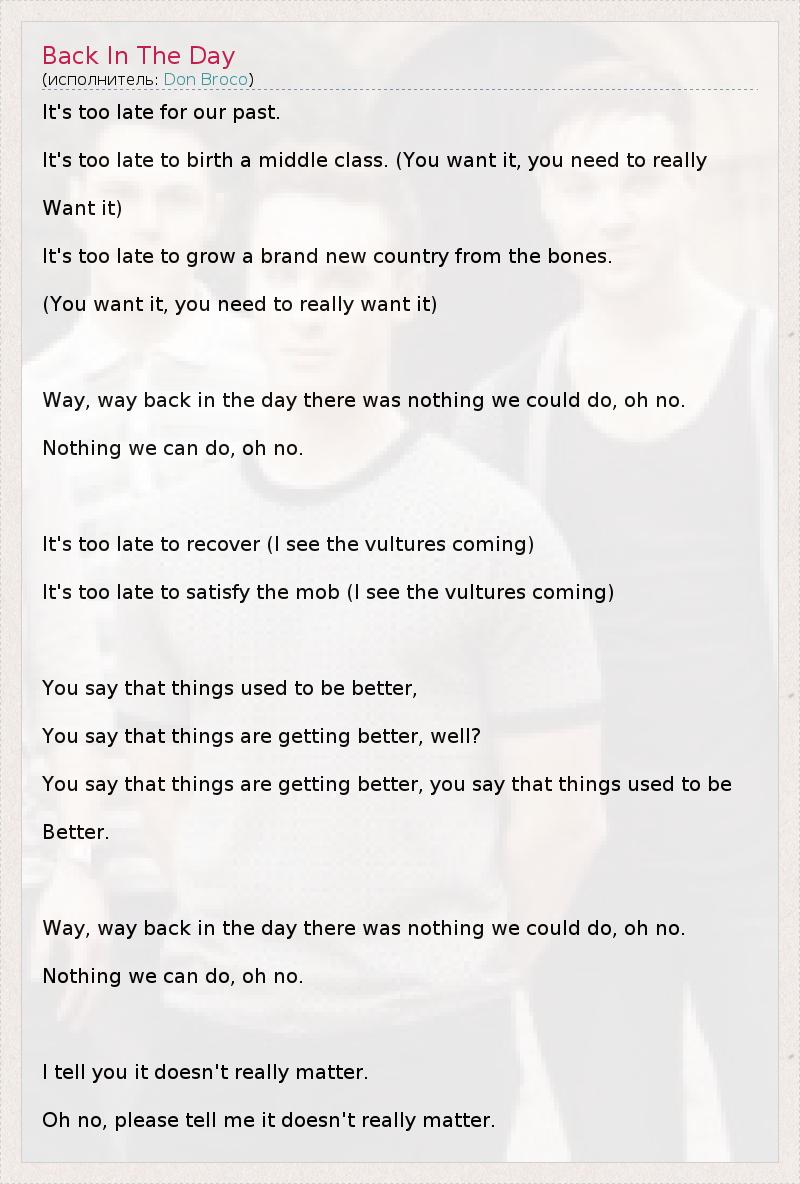 А как ты думаешь, о чем песня "Back In The Day" ?
