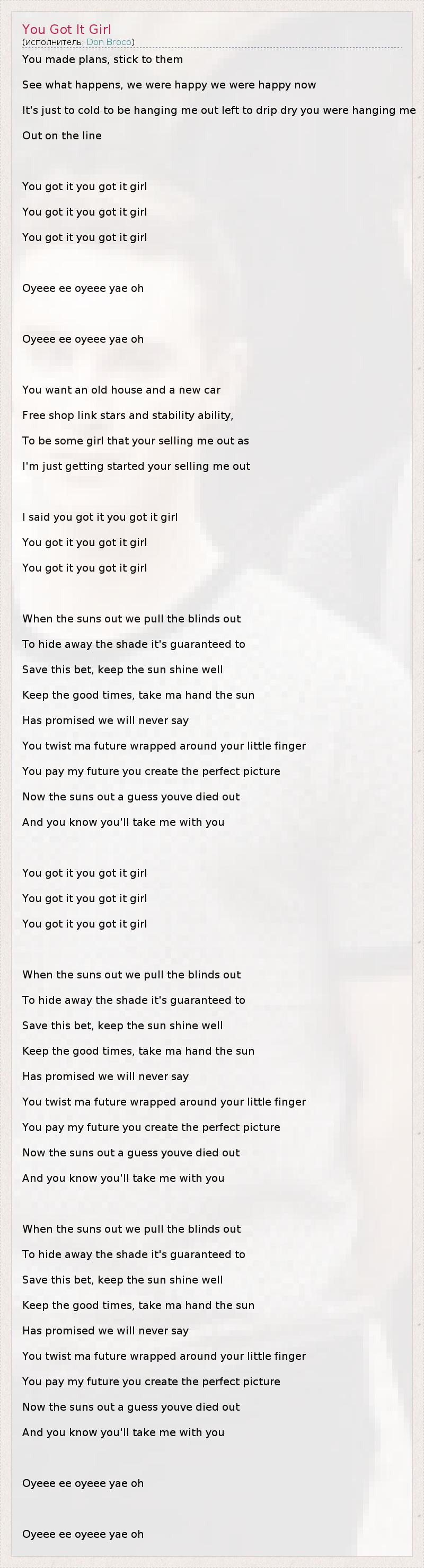 А как ты думаешь, о чем песня "You Got It Girl" ?