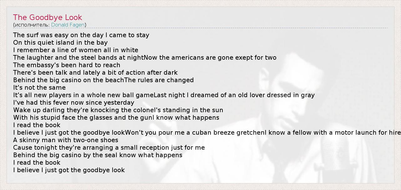А как ты думаешь, о чем песня "The Goodbye Look" ?