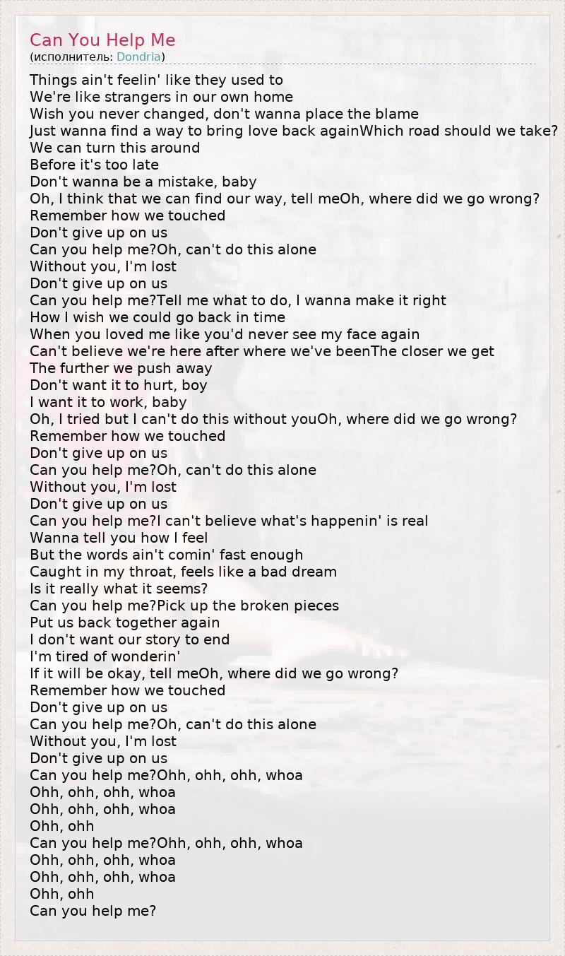 А как ты думаешь, о чем песня "Can You Help Me" ?