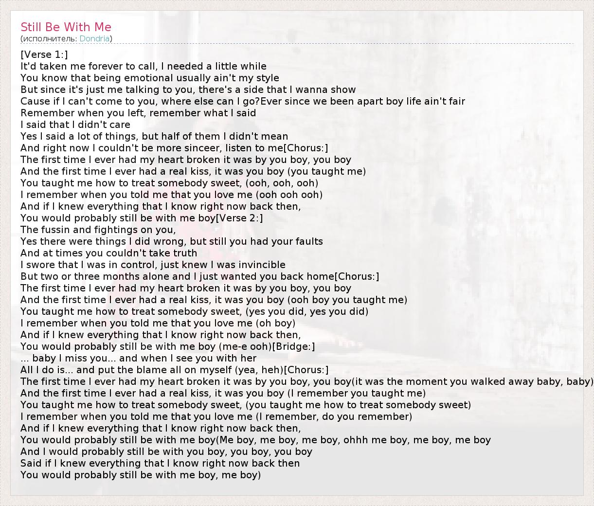 А как ты думаешь, о чем песня "Still Be With Me" ?