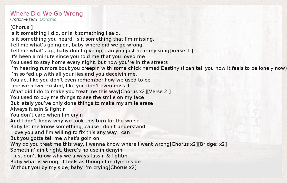 А как ты думаешь, о чем песня "Where Did We Go Wrong" ?