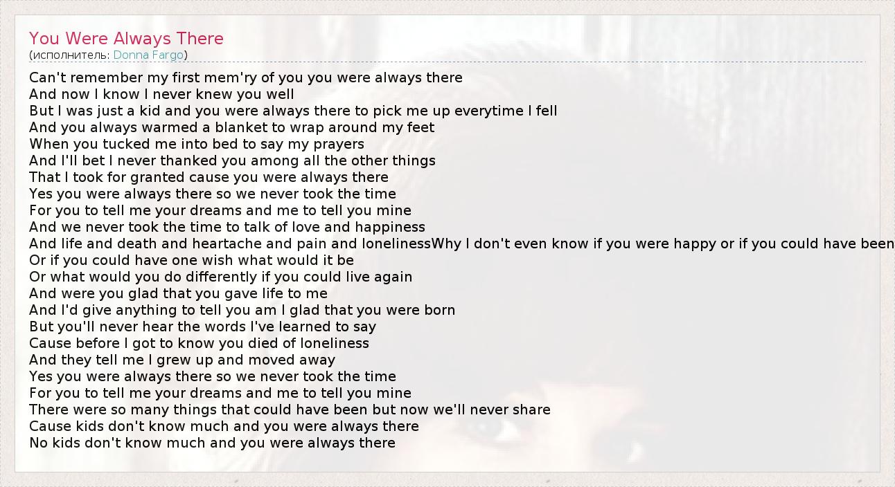 А как ты думаешь, о чем песня "You Were Always There" ?