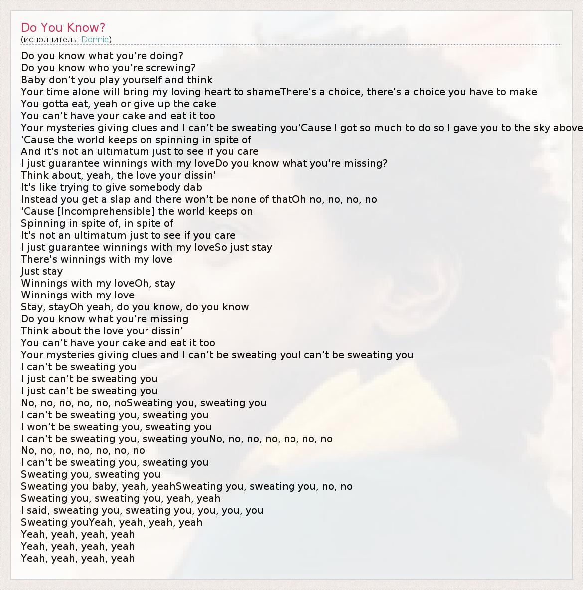 А как ты думаешь, о чем песня "Do You Know?" ?