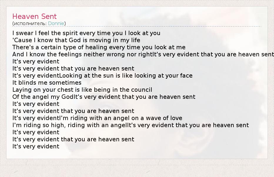 А как ты думаешь, о чем песня "Heaven Sent" ?