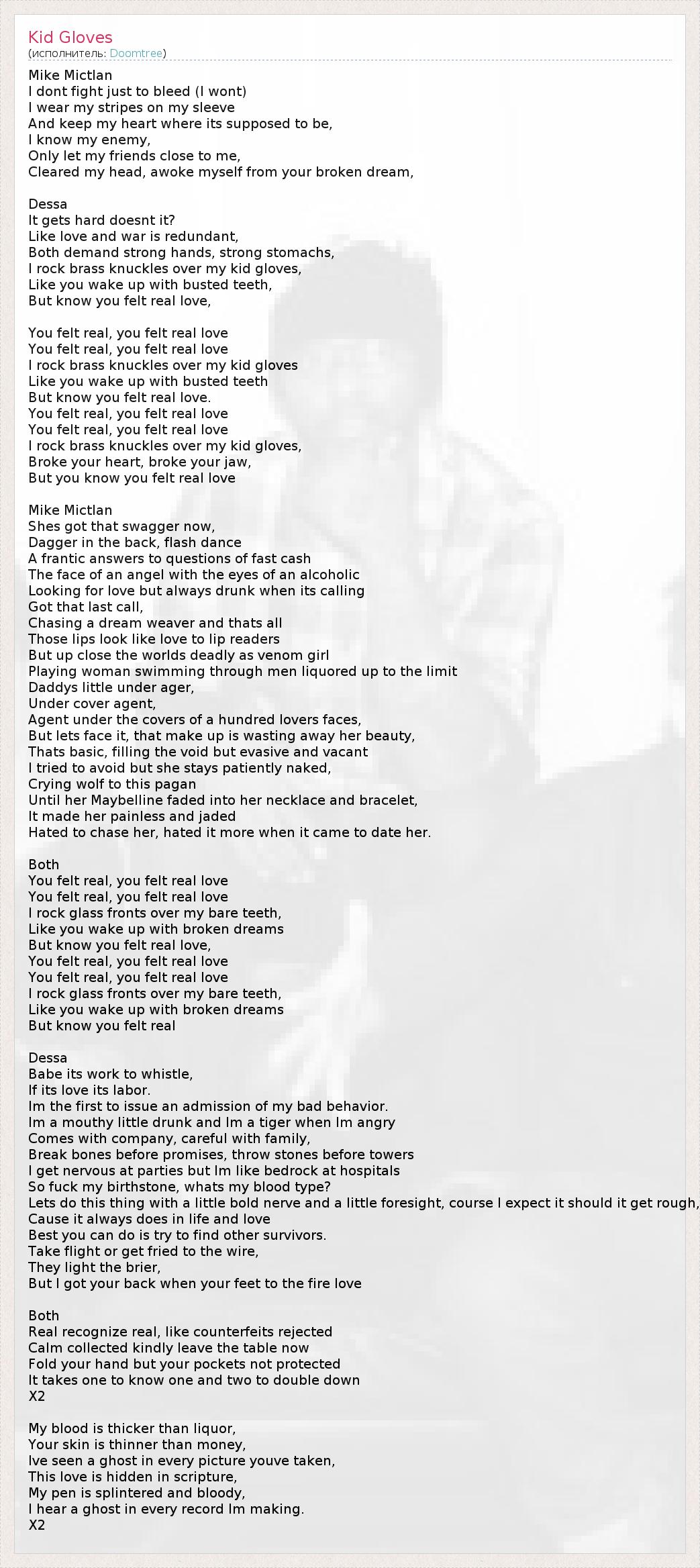 А как ты думаешь, о чем песня "Kid Gloves" ?