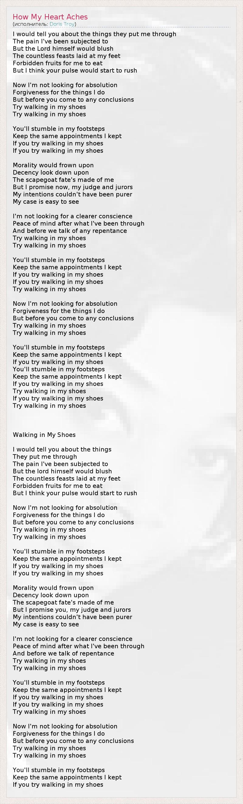 А как ты думаешь, о чем песня "How My Heart Aches" ?