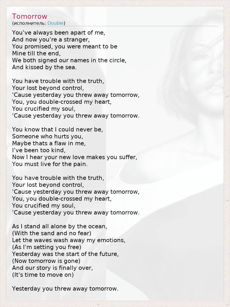 А как ты думаешь, о чем песня "Tomorrow" ?