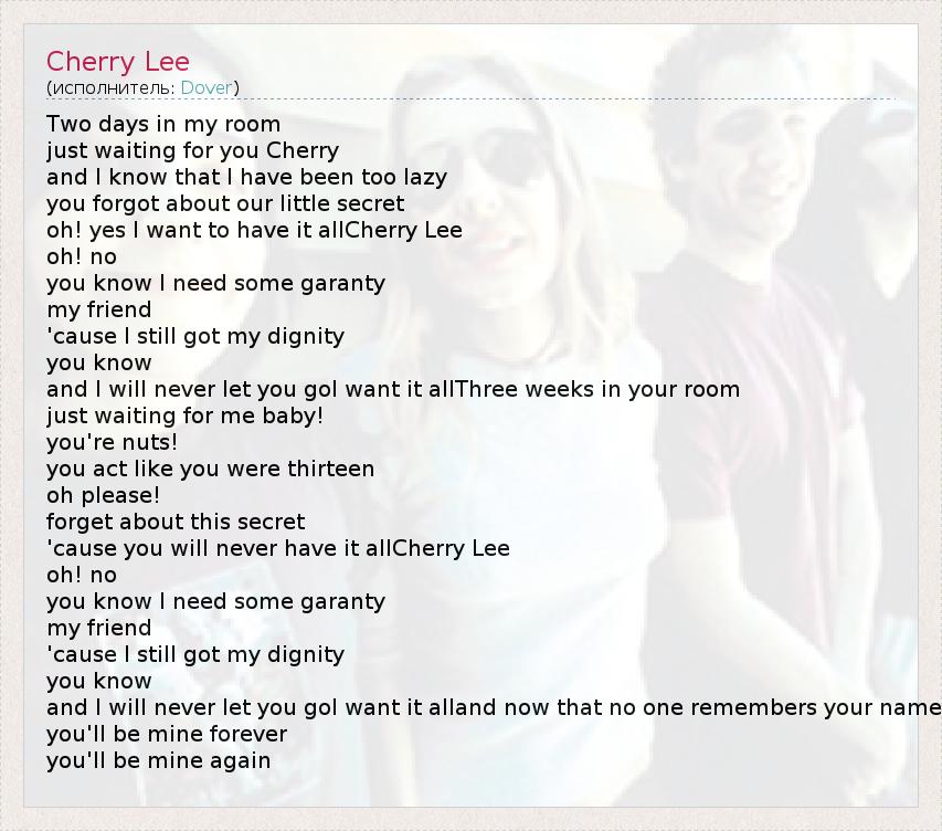 А как ты думаешь, о чем песня "Cherry Lee" ?