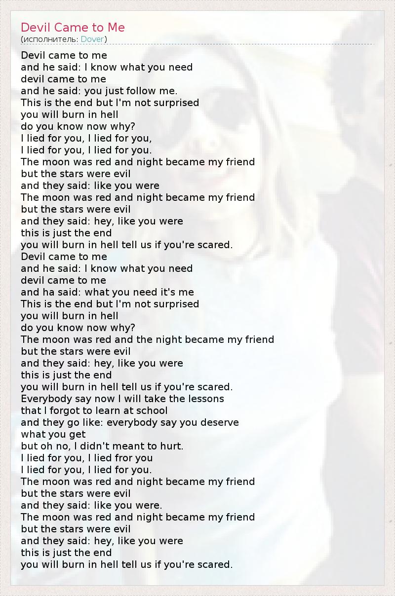 А как ты думаешь, о чем песня "Devil Came to Me" ?