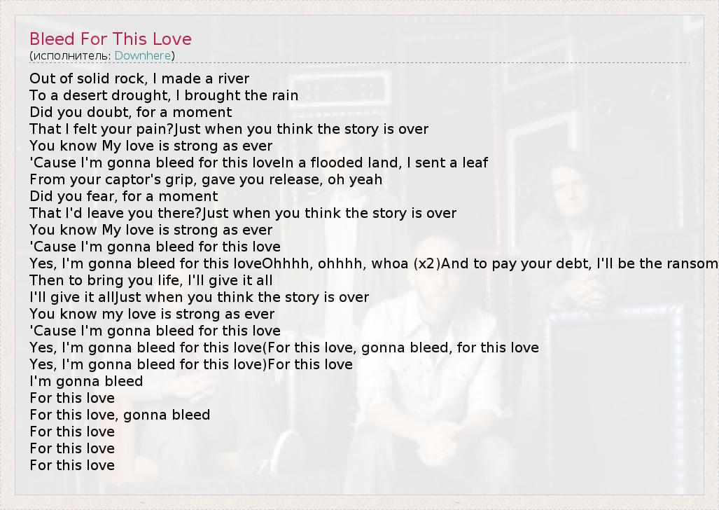 А как ты думаешь, о чем песня "Bleed For This Love" ?