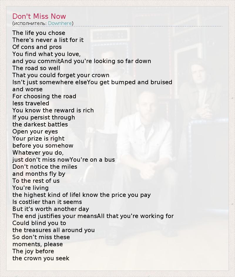 А как ты думаешь, о чем песня "Don't Miss Now" ?