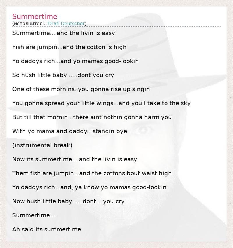 Знаменитая песня Джорджа Гершвина из оперы «Порги и Бесс», записанная Луи Армстронгом и Эллой Фитцджеральд.