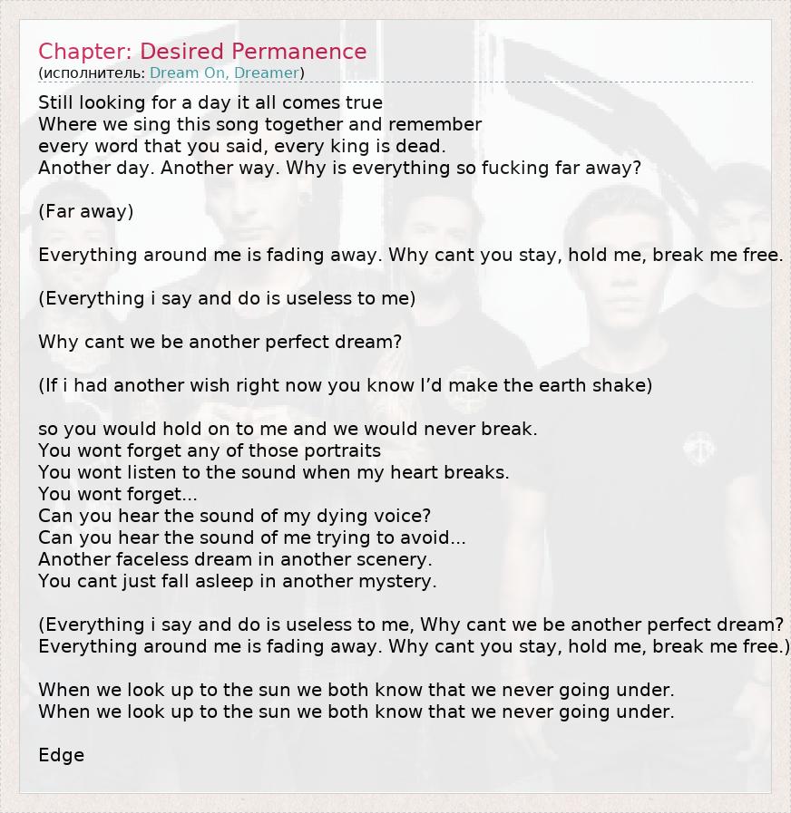 А как ты думаешь, о чем песня "Chapter: Desired Permanence" ?