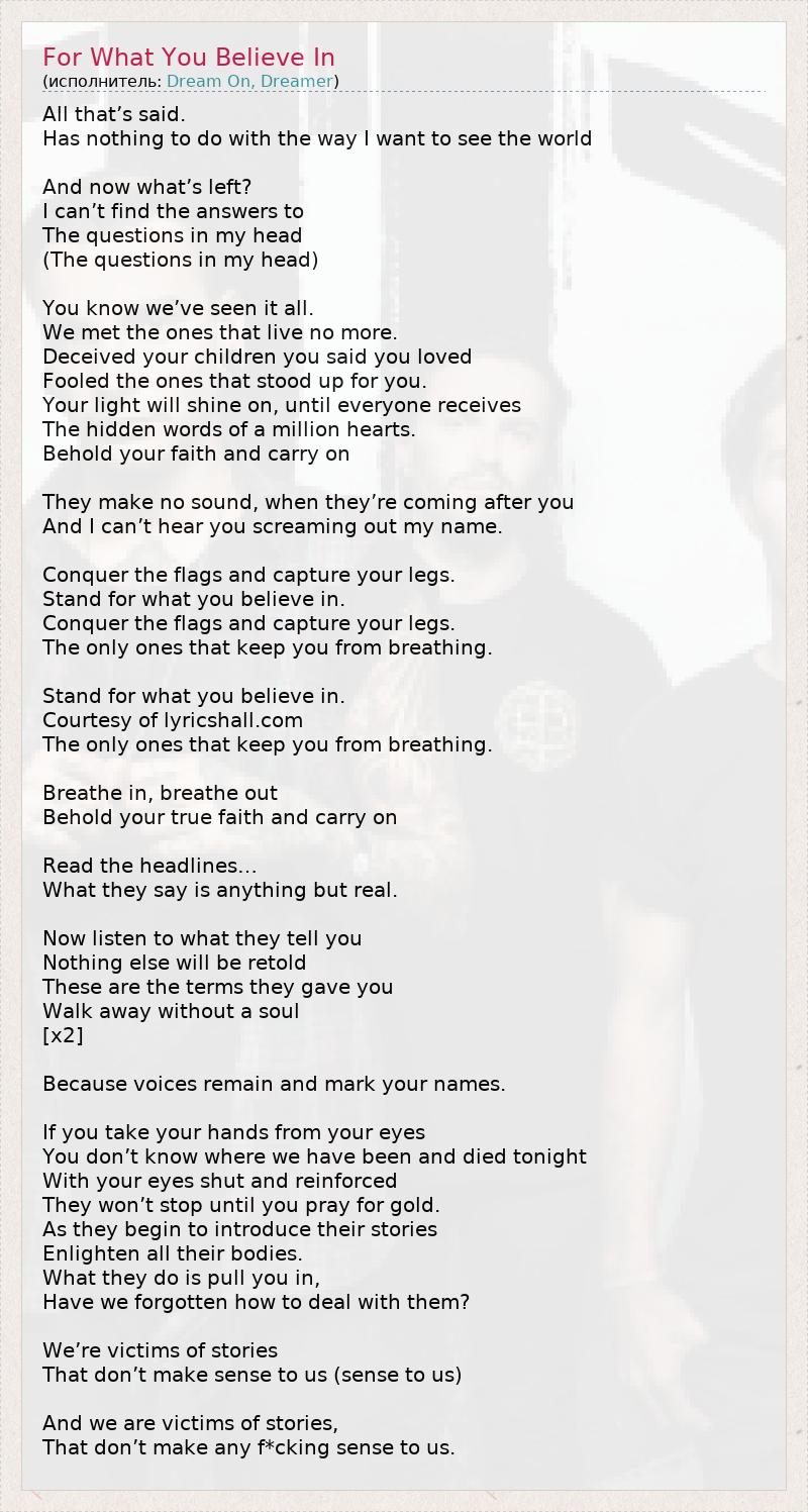 А как ты думаешь, о чем песня "For What You Believe In" ?