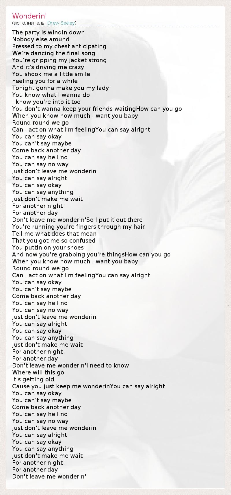 А как ты думаешь, о чем песня "Wonderin'" ?