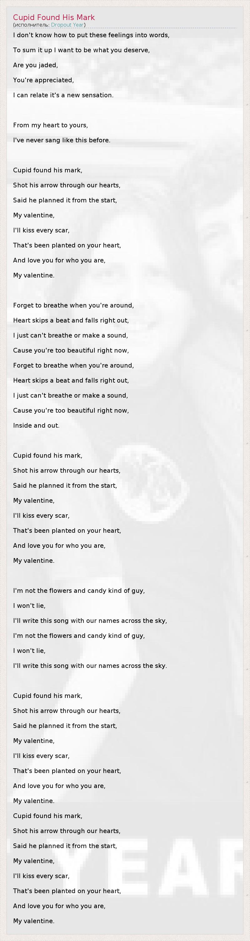 А как ты думаешь, о чем песня "Cupid Found His Mark" ?