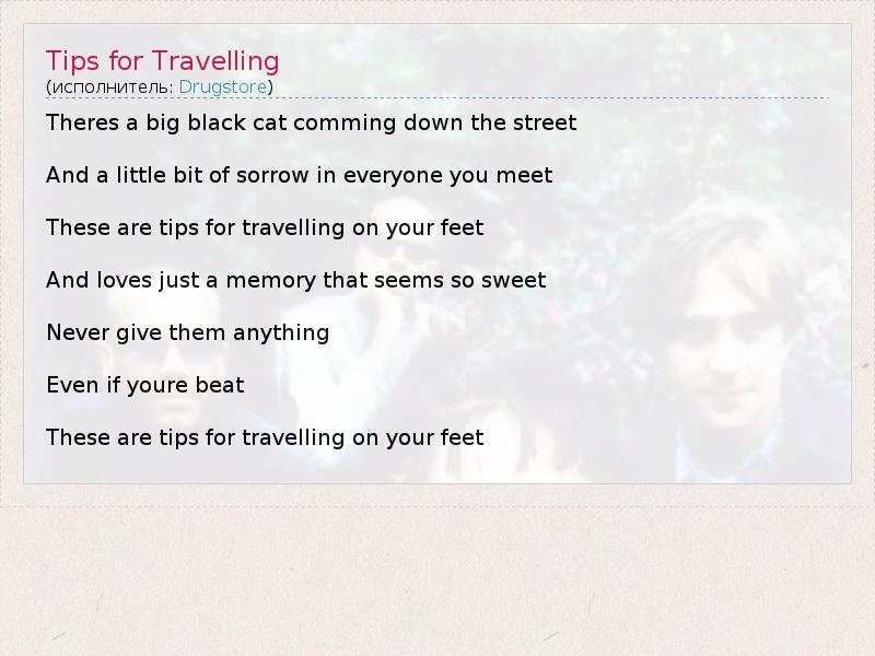 А как ты думаешь, о чем песня "Tips for Travelling" ?