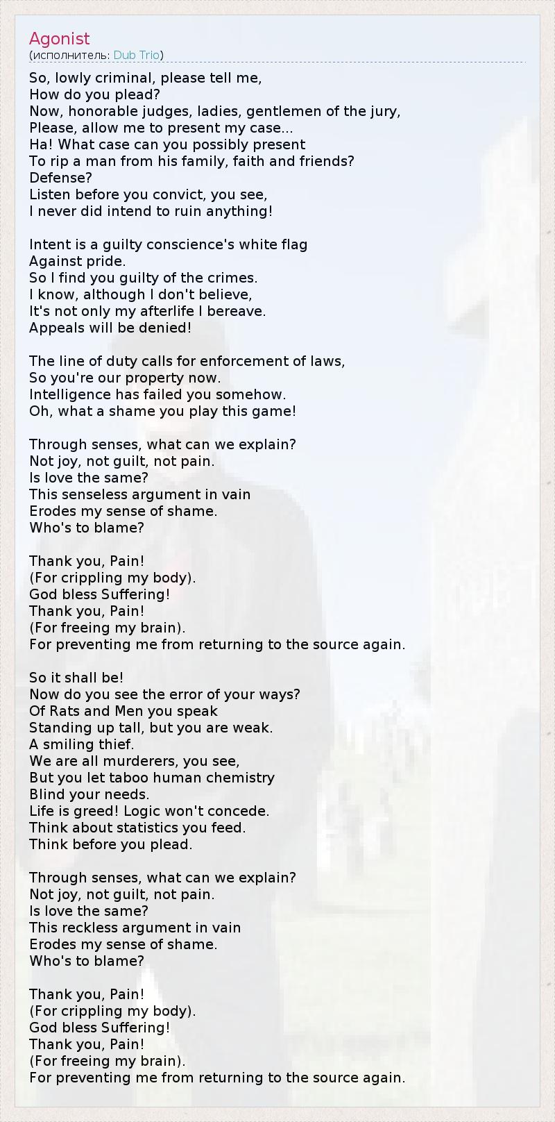 А как ты думаешь, о чем песня "Agonist" ?