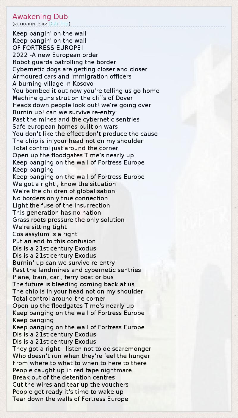 А как ты думаешь, о чем песня "Awakening Dub" ?