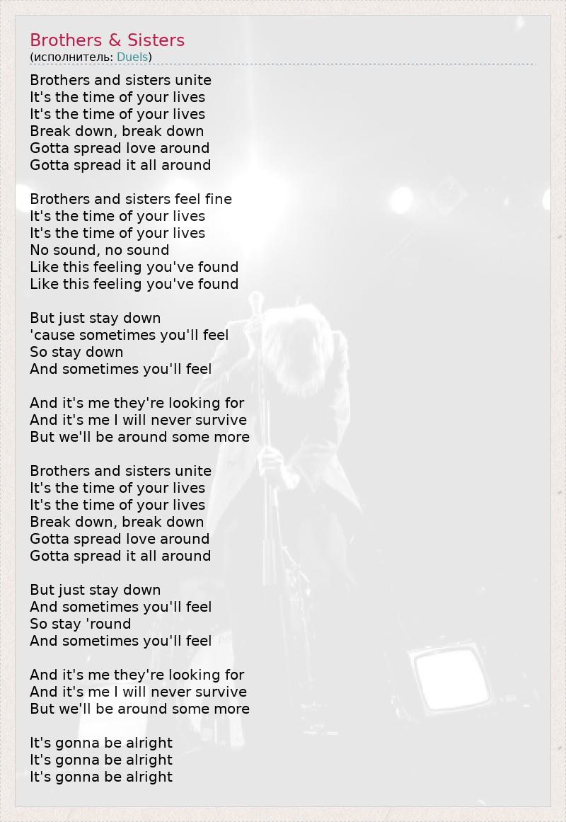 А как ты думаешь, о чем песня "Brothers & Sisters" ?