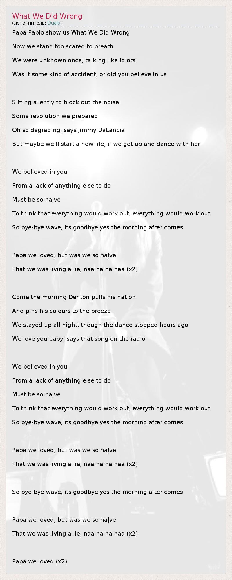 А как ты думаешь, о чем песня "What We Did Wrong" ?