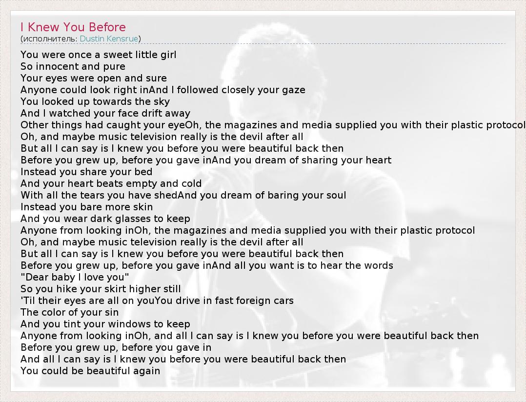 А как ты думаешь, о чем песня "I Knew You Before" ?