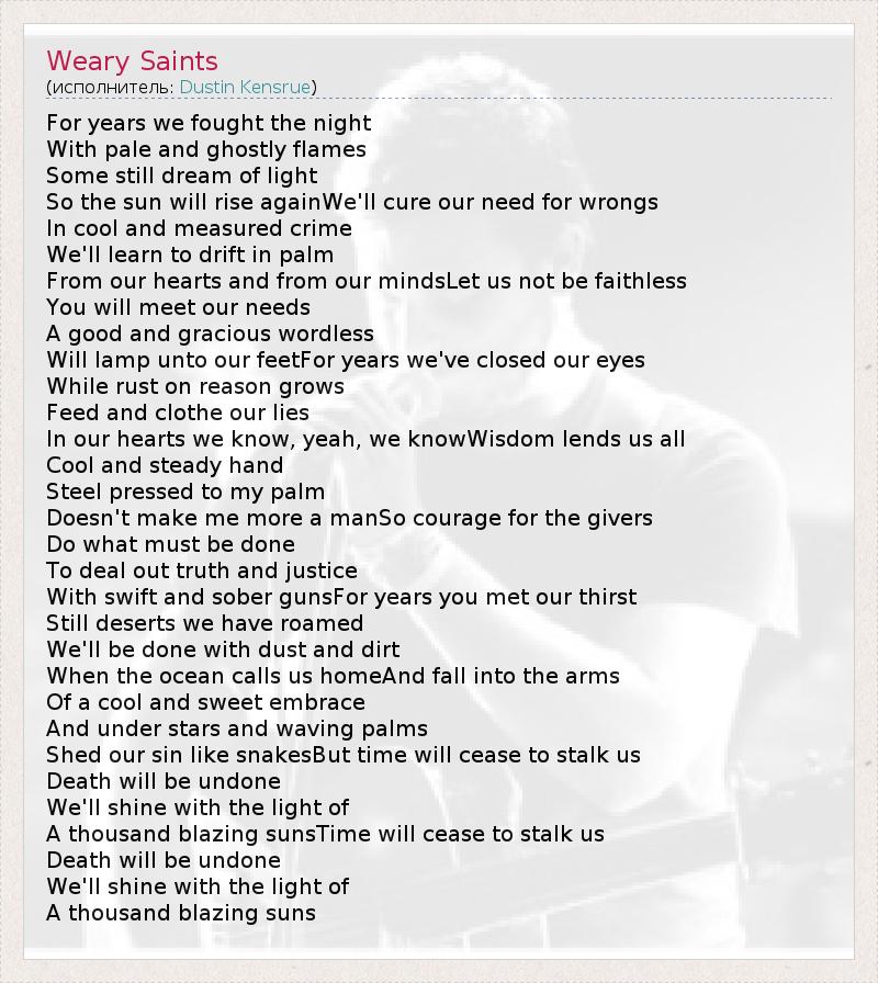 А как ты думаешь, о чем песня "Weary Saints" ?