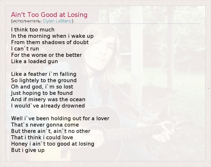 А как ты думаешь, о чем песня "Ain't Too Good at Losing" ?