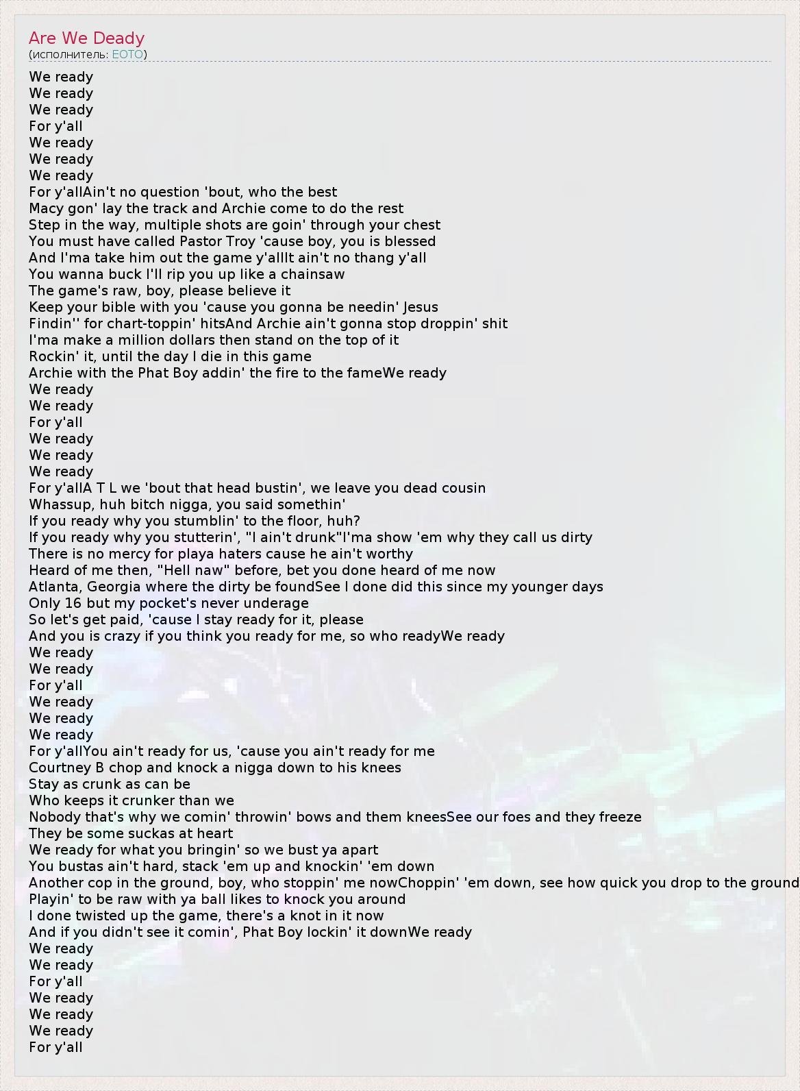 А как ты думаешь, о чем песня "Are We Deady" ?