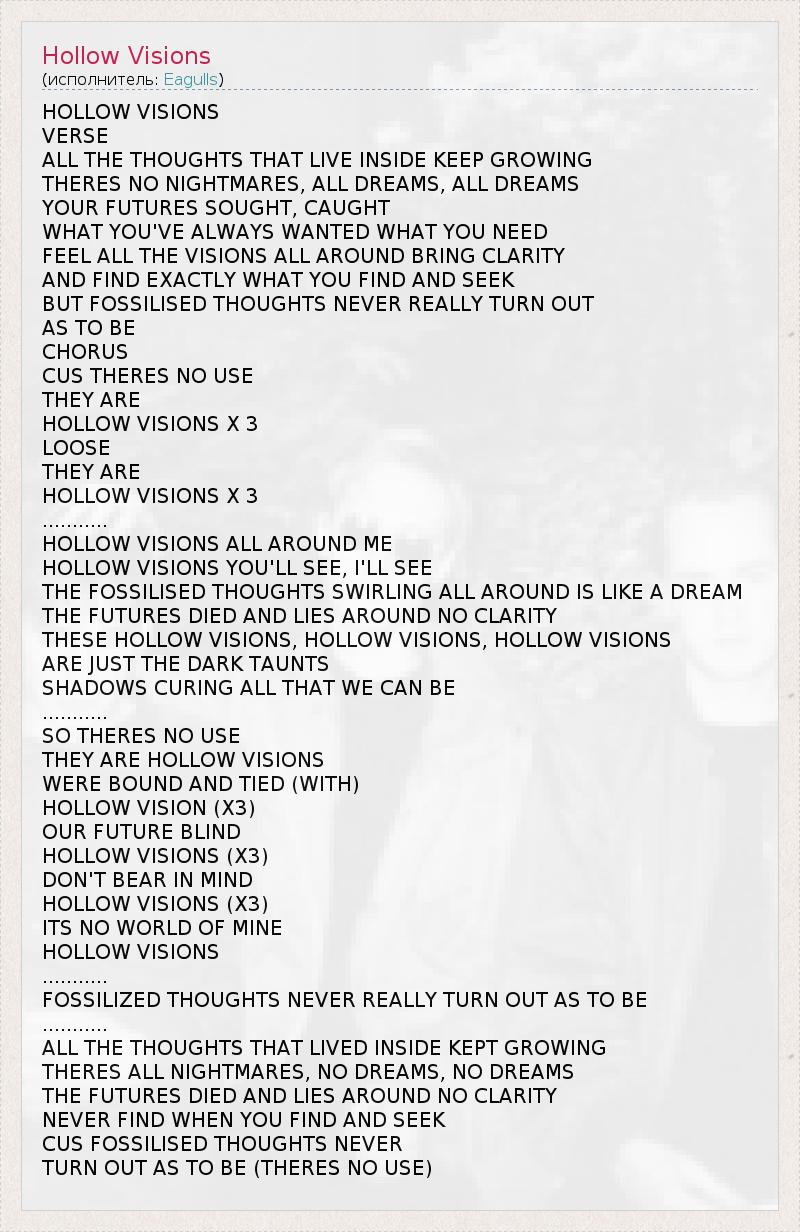 А как ты думаешь, о чем песня "Hollow Visions" ?