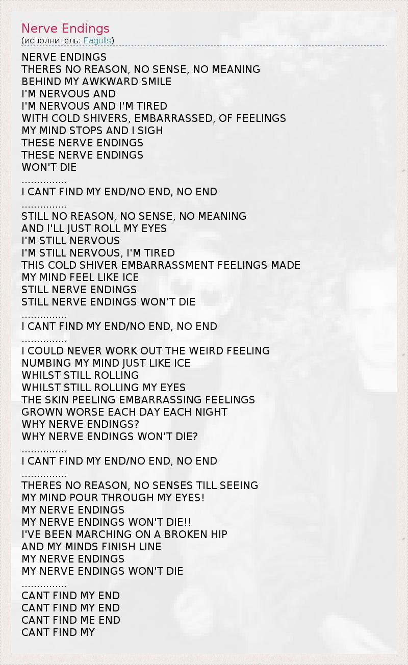 А как ты думаешь, о чем песня "Nerve Endings" ?