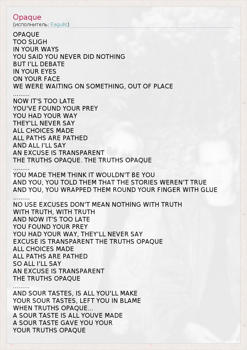А как ты думаешь, о чем песня "Opaque" ?