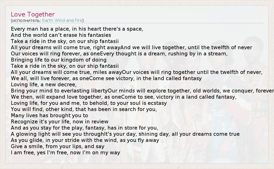 А как ты думаешь, о чем песня "Love Together" ?