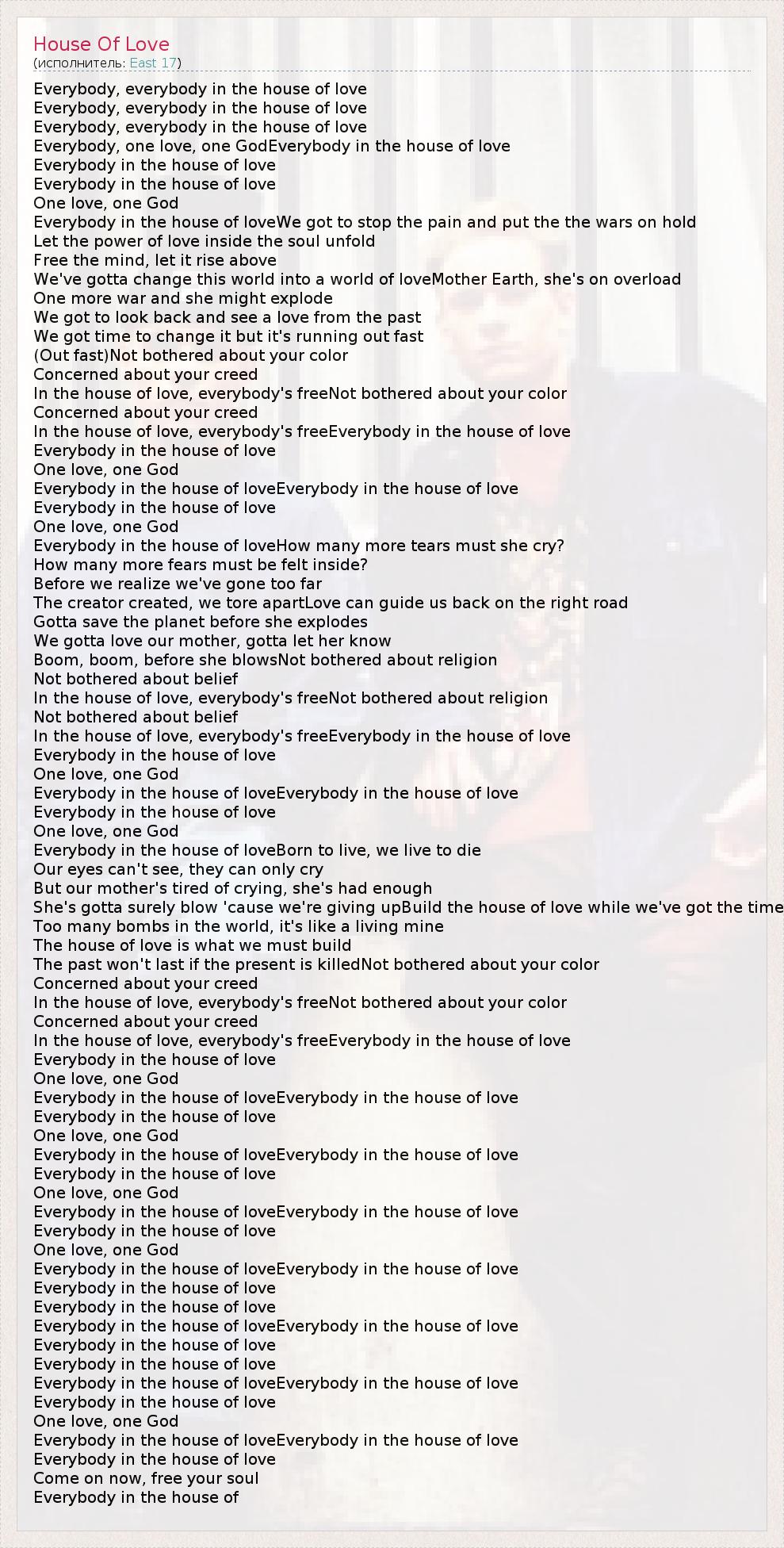 Everybody in the house of loveWe got to stop the pain and put the the wars on hold