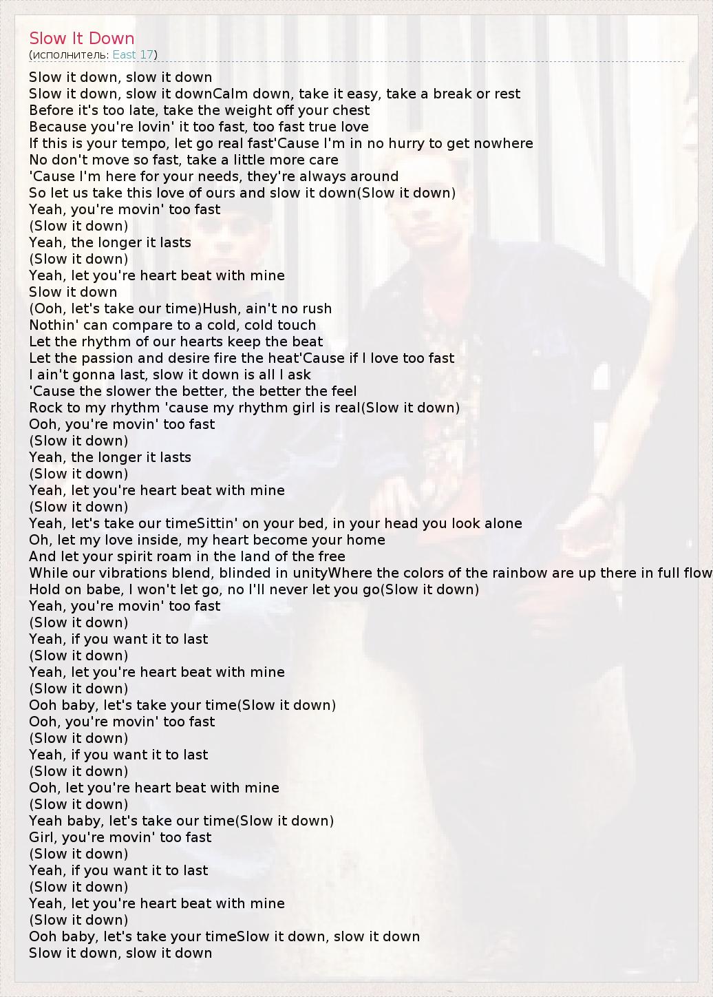 А как ты думаешь, о чем песня "Slow It Down" ?