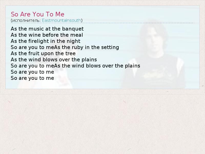 А как ты думаешь, о чем песня "So Are You To Me" ?