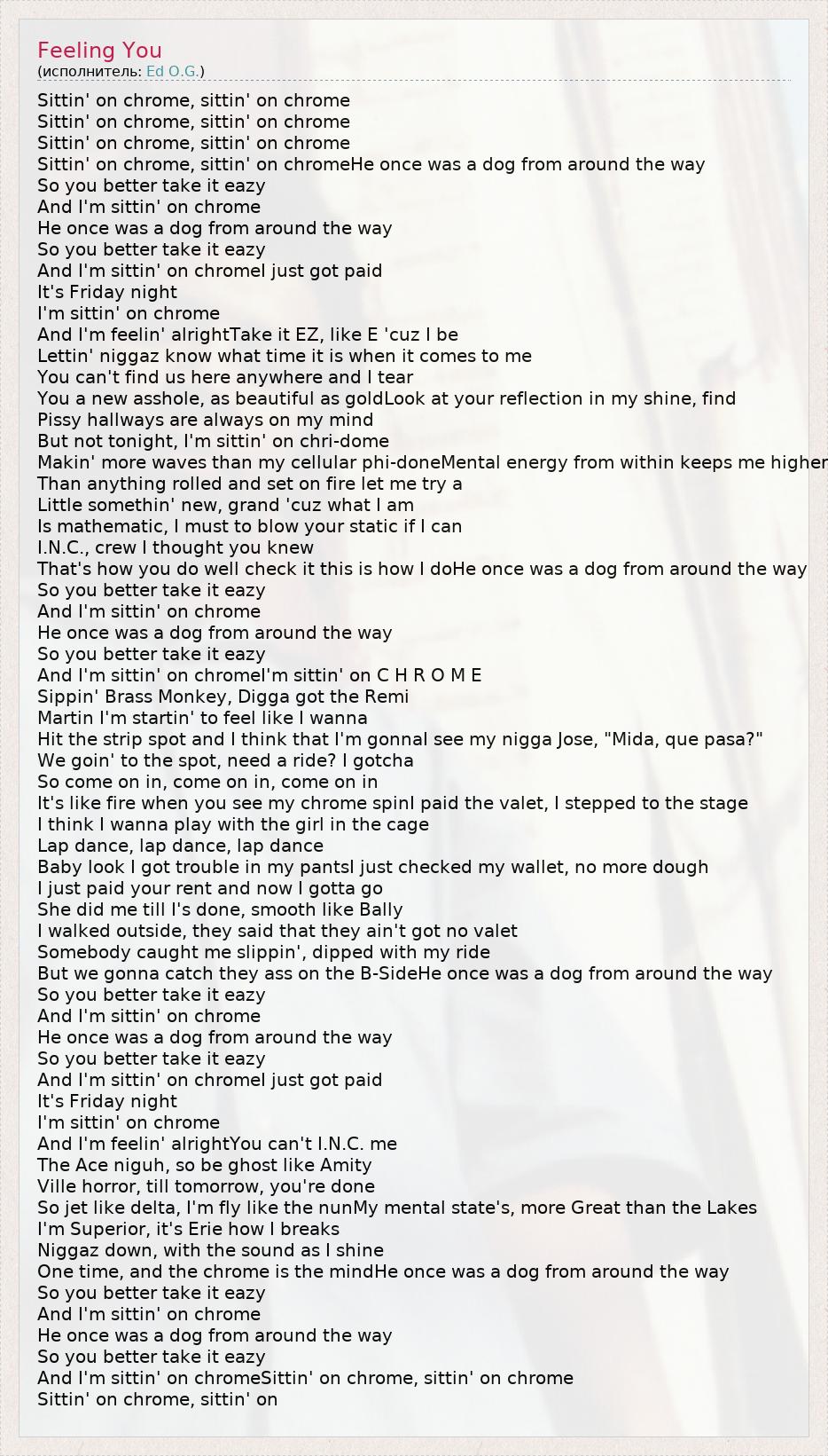 Это интересно:Edo G, также известный как Ed O.G. (рожденный Эдвард Anderson в 1971 г.), хип-хоп-артист из Бостона, шт. Массачусетс, США. В 1991 г. Ed O.G. выпускает очень неплохой альбом с его тогда-группой Da Bulldogs, названный "Life of a Kid in the Ghetto". В которой входили такие хиты, как "Be a Father to Your Child" и "I Got To Have It,", который был выбран позже Mary J. Blige в треке "Ooh!". Группа была критикована Mercury Records в 1993 г. С тех пор... продолжение