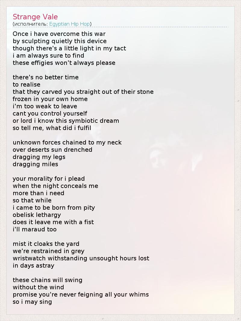 А как ты думаешь, о чем песня "Strange Vale" ?