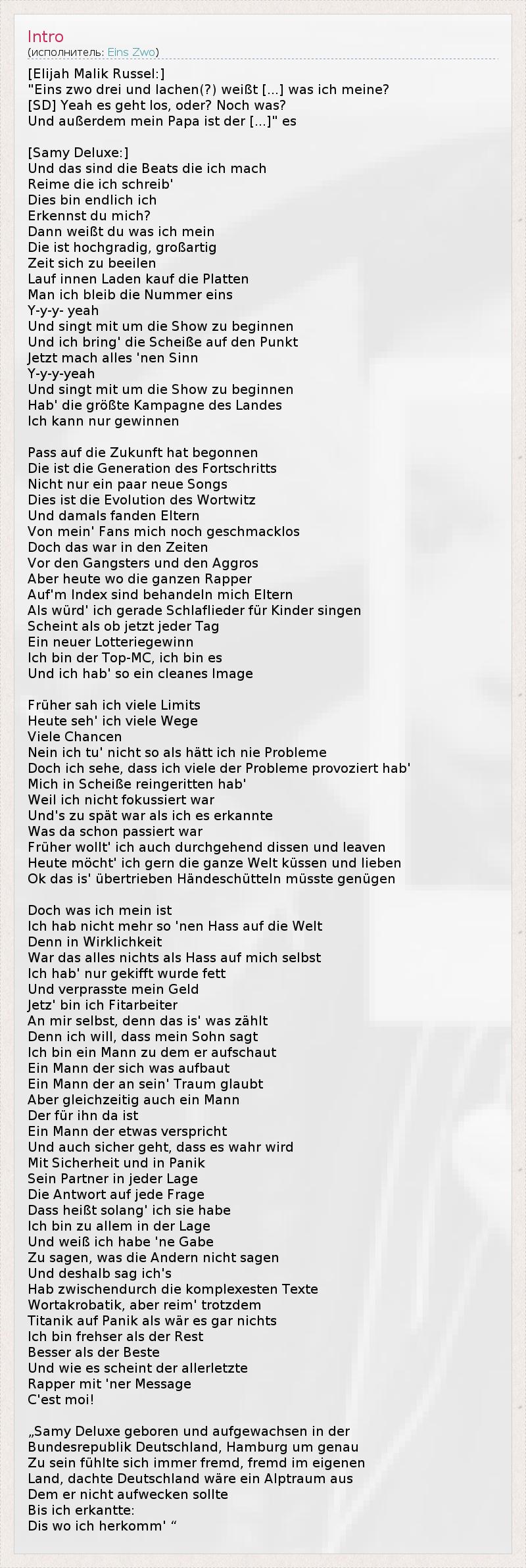 "Eins zwo drei und lachen(?) weißt [...] was ich meine?