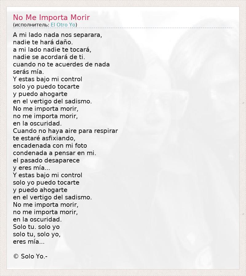А как ты думаешь, о чем песня "No Me Importa Morir" ?