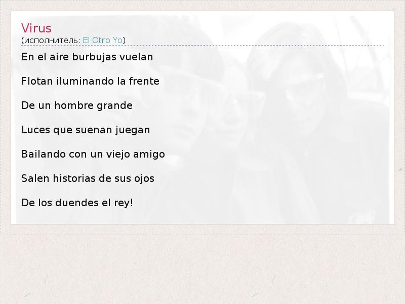En el aire burbujas vuelan Flotan iluminando la frente De un hombre grande Luces que suenan juegan Bailando con un viejo amigo Salen historias de sus ojos De los duendes el rey!