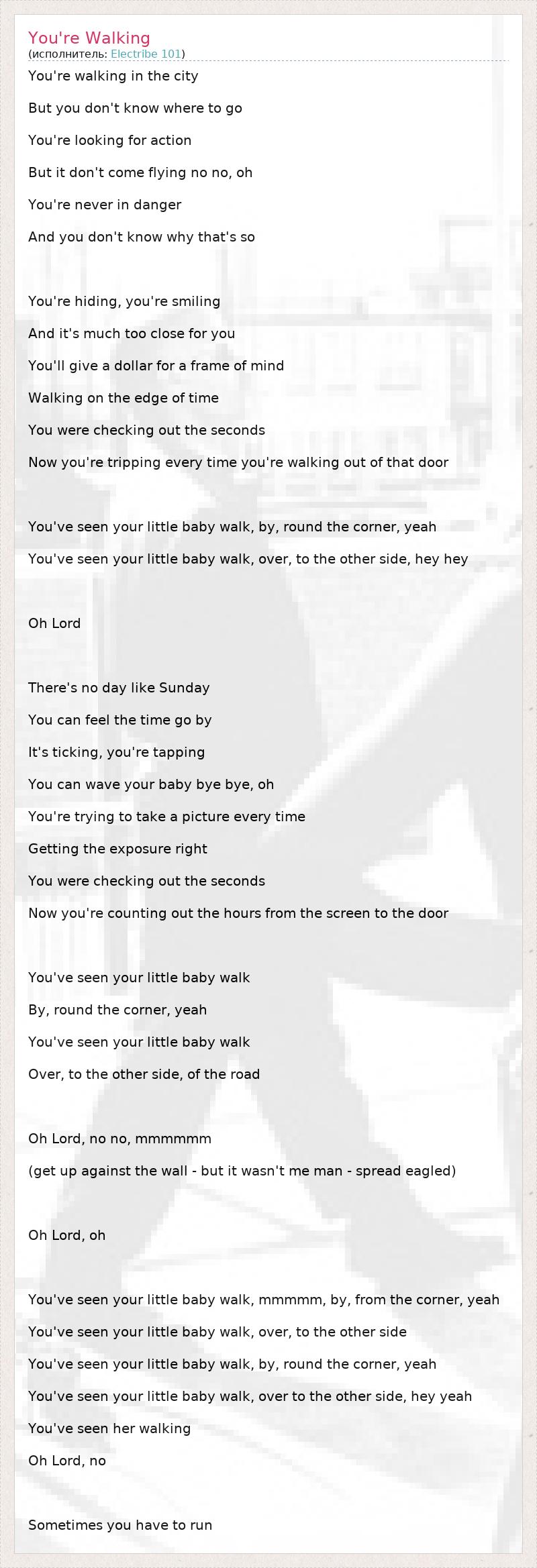 А как ты думаешь, о чем песня "You're Walking" ?